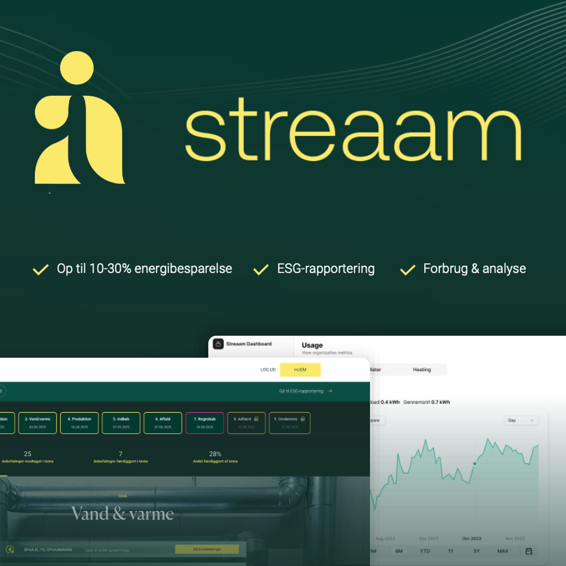 Det kan være dyrt og tidskrævende at have konsulenter til at gennemgå en virksomheds energiforbrug. Streaam tilbyder med afsæt i mange års erfaring inden for energirådgivning, et simpelt og effektivt digitalt baseret overblik over hvor virksomheden selv kan hente stor værdi - før der investeres ressourcer i ekstern assistance.